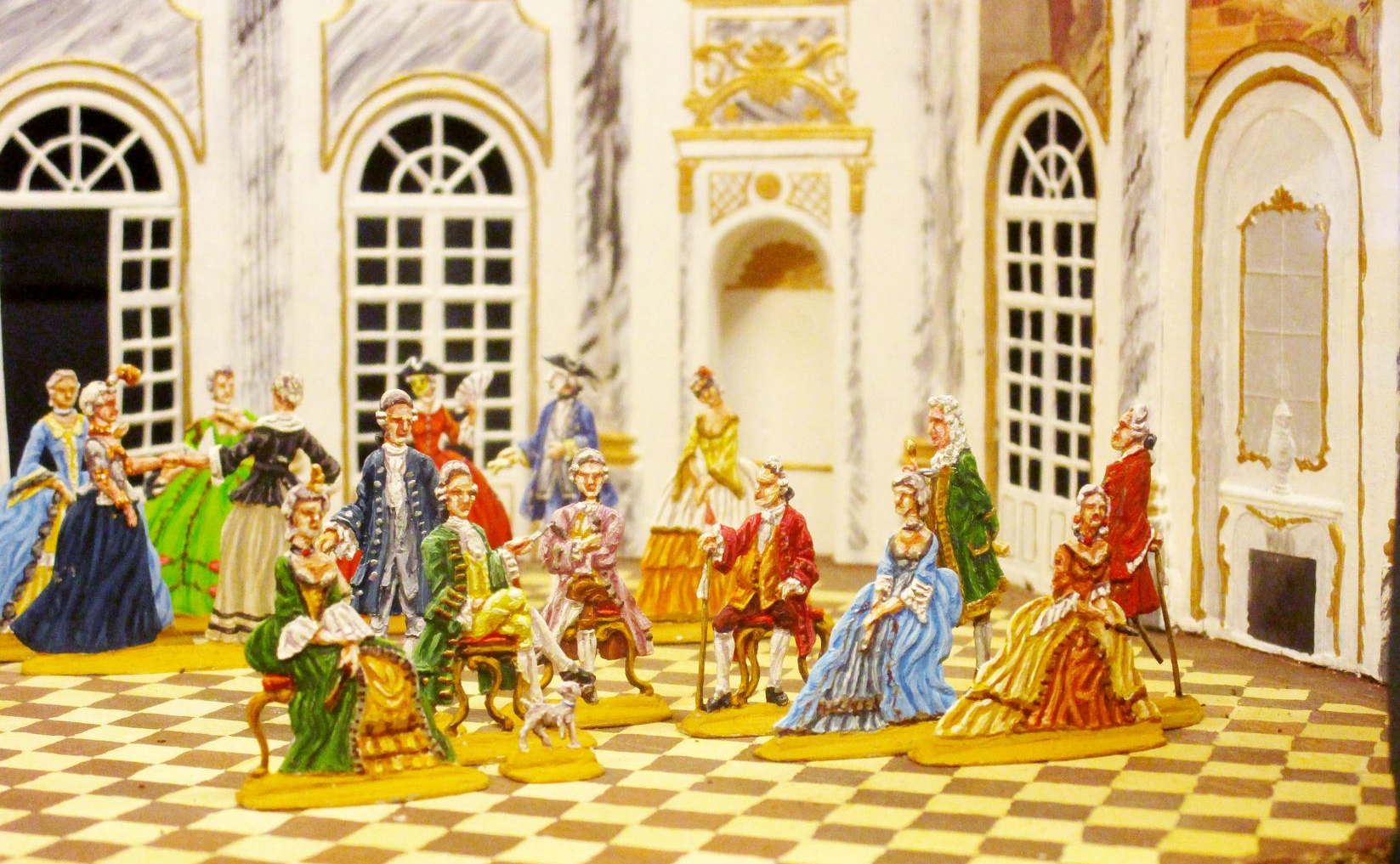 Durch die zu sehenden Exponate aus den Händen zahlreicher Zinnfigurensammler erstrahlt der Pomp des 17. Jahrhunderts weiterhin in vollem Glanze. Nebst Kuchen verzehrenden Adelsdamen.